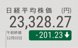日経平均反落、午前終値201円安の2万3328円 - 日本経済新聞