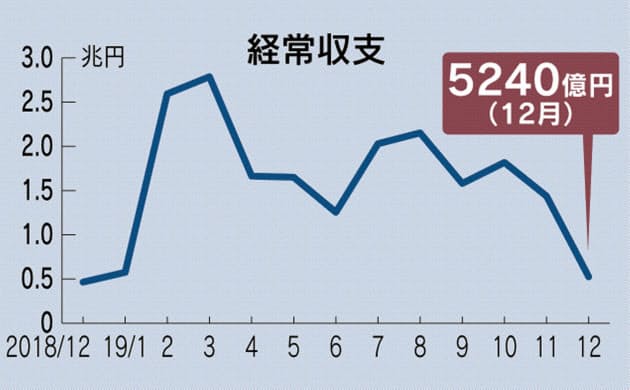 経常収支5240億円の黒字 19年12月、66カ月連続黒字 - 日本経済新聞