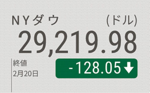 NYダウ反落し128ドル安、新型肺炎の拡大懸念で - 日本経済新聞
