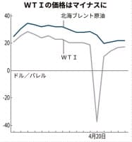 ニューヨーク市場に上場する原油先物のWTI(ウエスト・テキサス・インターミディエート)が20日に、取引中心の期近の5月物が史上初めて「マイナス」となった。新型コロナウイルスの感染拡大を抑える対策で経済活動が停滞し原油需要が急減しているうえ、WTIの決済手段も影響している。異例な値動きの背景を読み解いた。