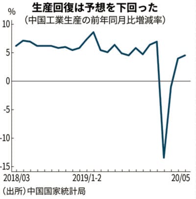 新型コロナ:中国の工業生産、5月4.4%増 小売売上高は2.8%減 - 日本経済新聞