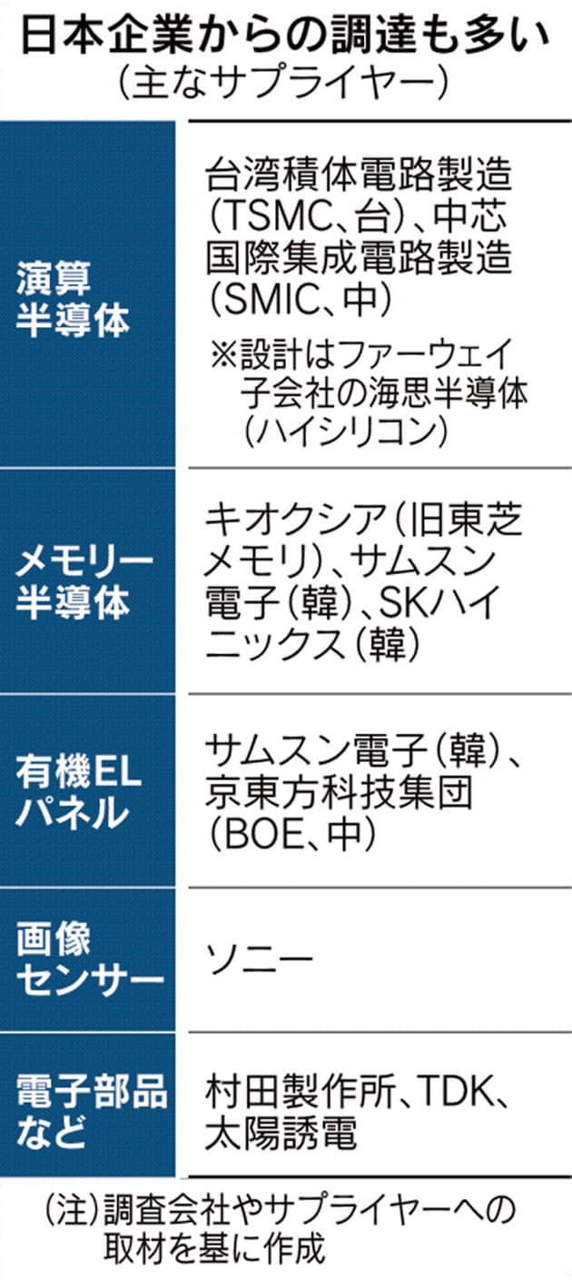 米政府は17日、中国の華為技術(ファーウェイ)への包囲網をさらに強めるため、米国の技術がからんだ半導体の同社への供給を事実上、全面禁止した。スマートフォンなどの生産に支障が出る可能性がある。ファーウェイは日本企業だけでも年1兆円の部品取引があり、影響は広範に及びそうだ。