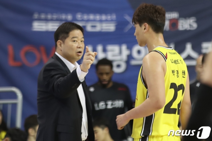 | 2019년 11월 울산 동천체육관에서 열린 '2019-2020 현대모비스 프로농구' 울산 현대모비스와 창원 LG의 경기. 당시 LG 현주엽 감독이 선수들에게 지시하고 있다./사진=뉴스1 |